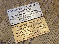 Engraved memorial plaques, urn plaques and bench plaques. All manufactured from a modern Traffolyte equivalent material which is a 2 ply high impact acrylic material.